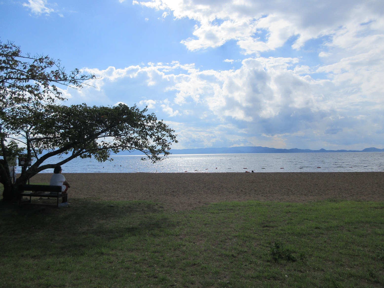 到着した砂浜では、泳いでいる方や湖の景色をご覧になり、皆さま思い思いに楽しまれていました。