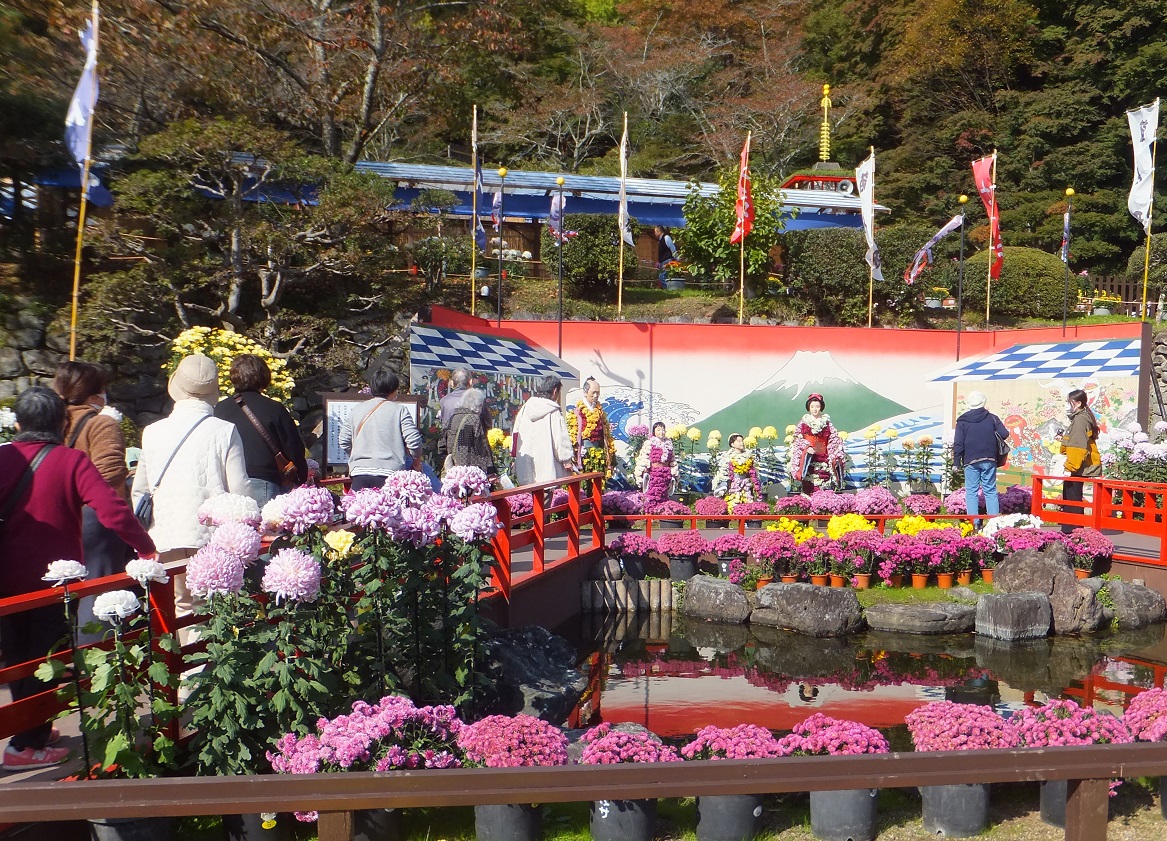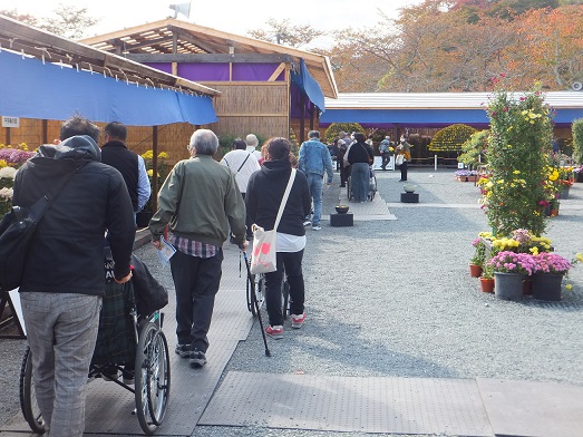 公園内には色とりどりの菊が美しく咲き誇り、見ごたえのある展示に皆さん思わず笑顔に。