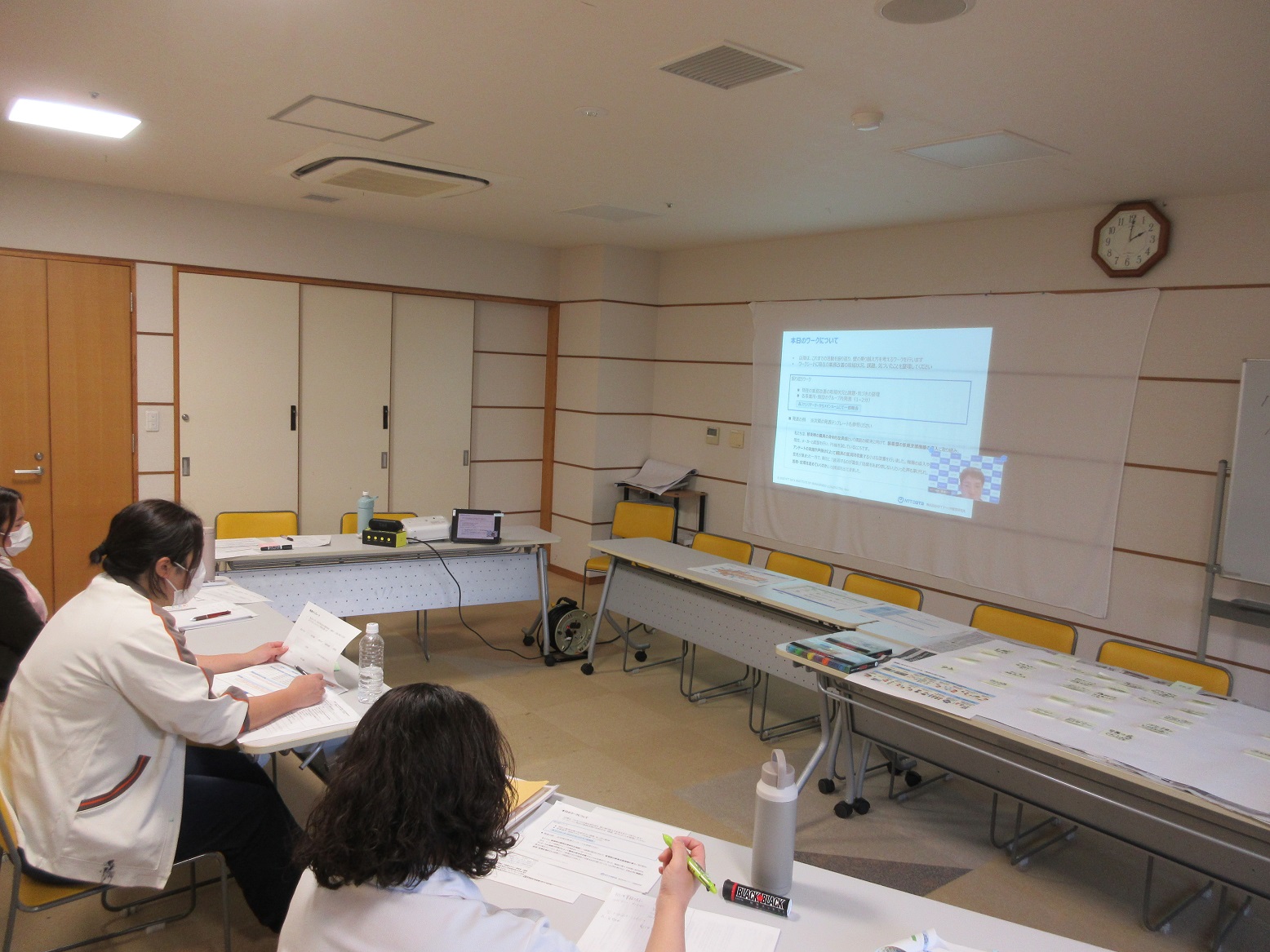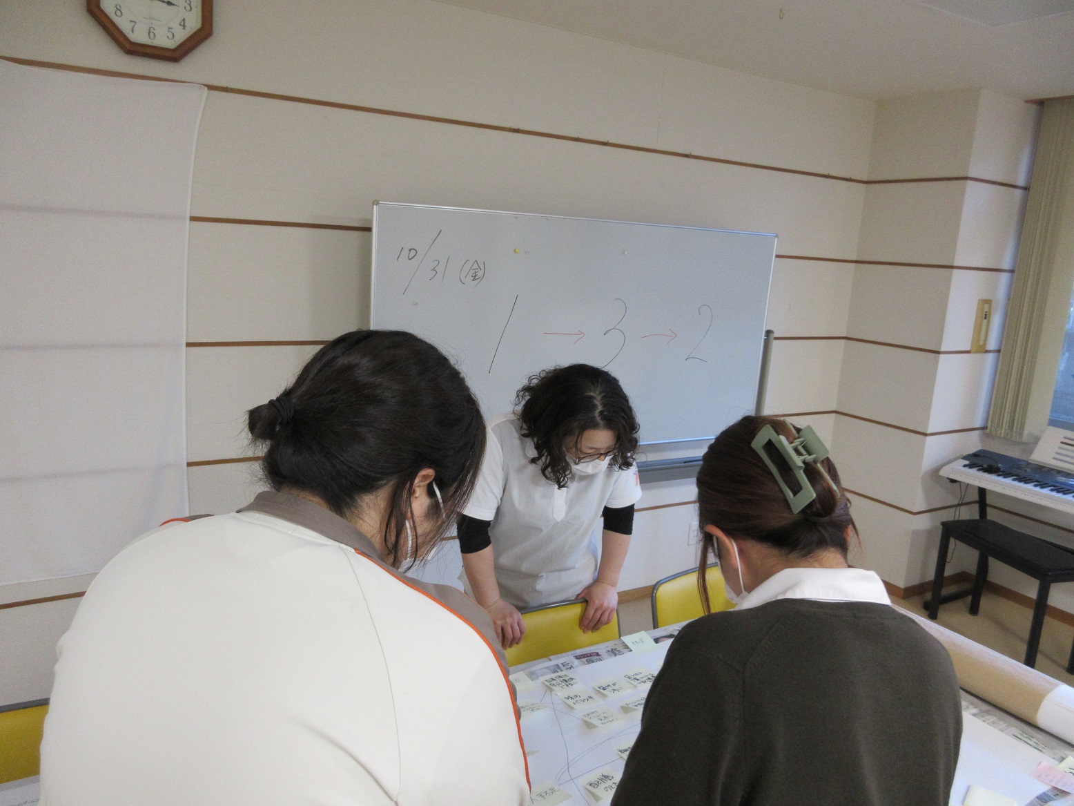11月4日、厚労省・生産性向上フォローアップセミナー2/2回目を受講しました。「生産性向上ガイドラインを活用した業務改善の考え方と取組手順の再確認」(1/2回目のおさらい)から始まりました。「現場の課題を見える化する、緩やかな因果関係図づくりワークショップ」「実行計画の作成を始めよう」の講義を聞きながら、当施設では、栄養給食課に焦点を当て、因果関係図作成に取り組みました。「原因」「結果」「悪影響」について、模造紙を使ってそれぞれ整理したものの、問題構造の文章化まではできませんでした。