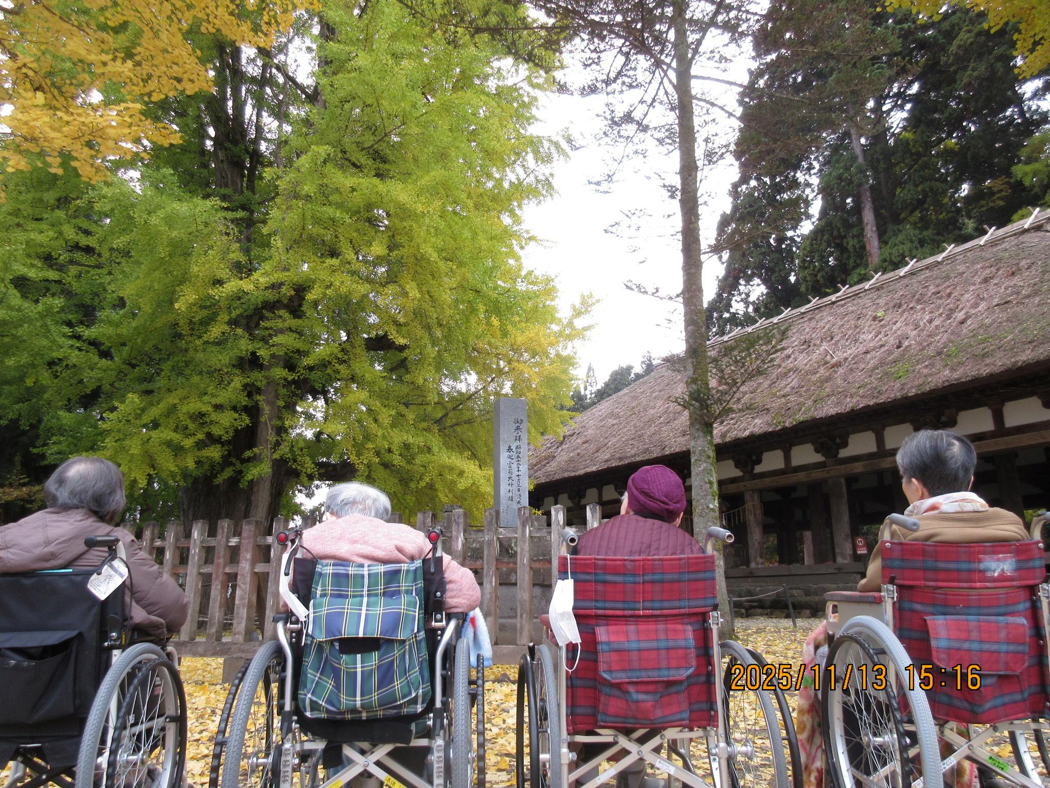 紅葉も見ごろを迎えたところで、利用者さまと一緒に慶徳熊野神社(長床)へ