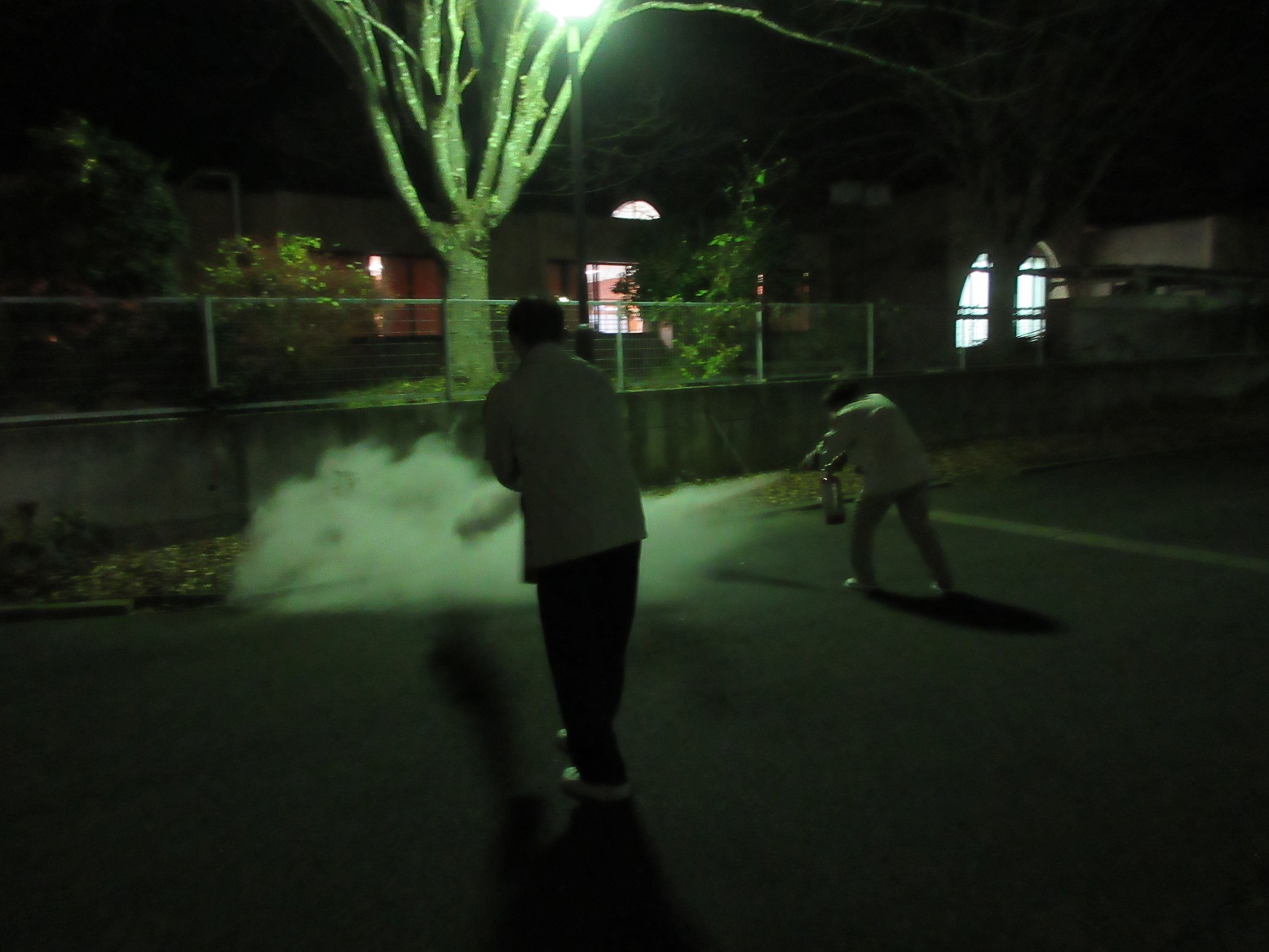 自衛消防訓練の一環として、実際の消火器を使用した初期消火訓練を行いました。参加者全員が操作を体験し、消火器の使い方を改めて確認しました。